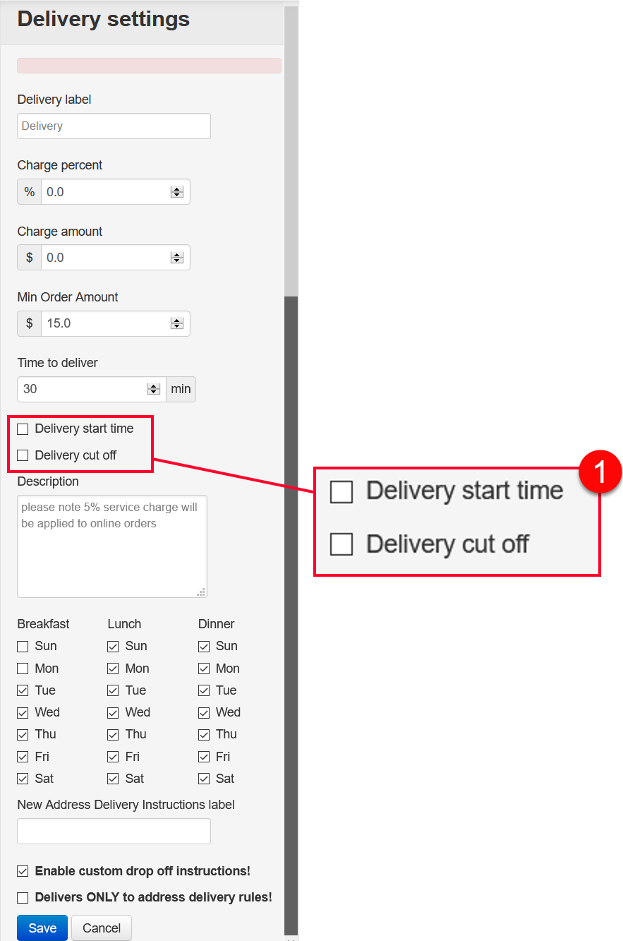1. Check-in the Delivery start time and Delivery cut off checkboxes,