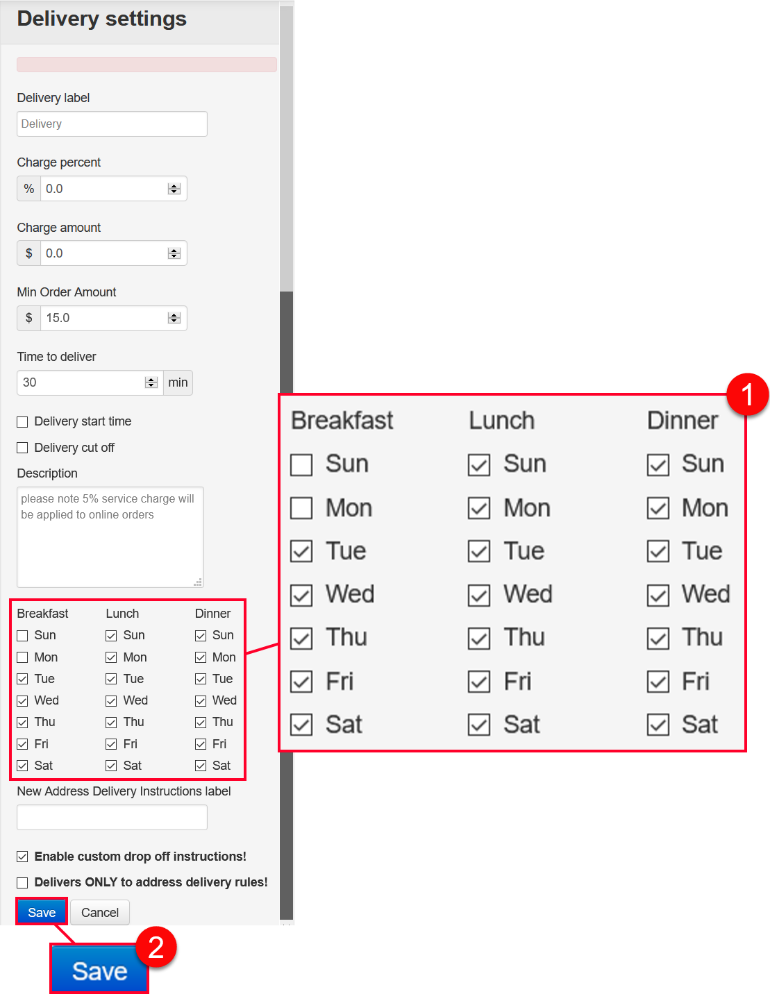 For example, say you don’t deliver Breakfast on Sundays and Mondays.