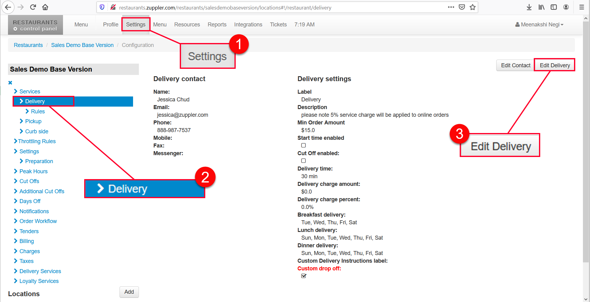 Here, you can manage what days of the week and time slots (using hours of operation), you want to take your delivery orders.