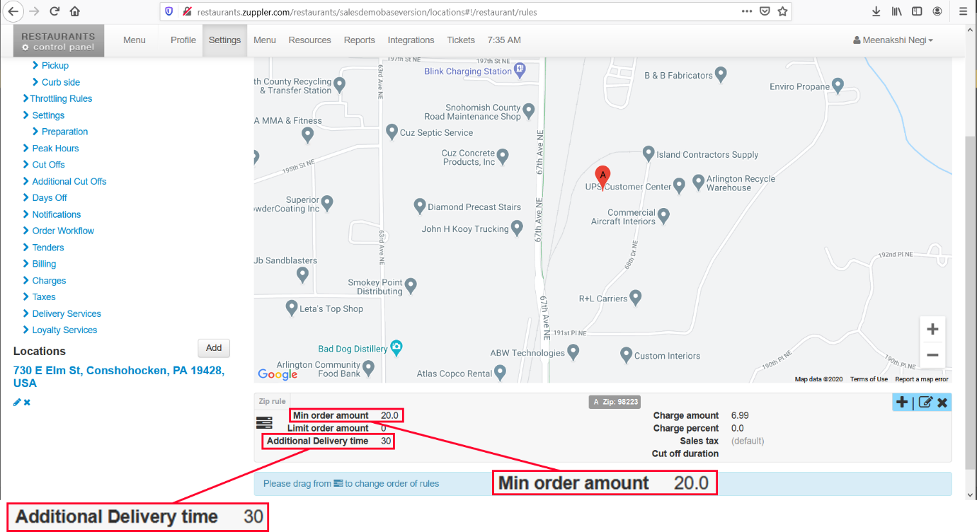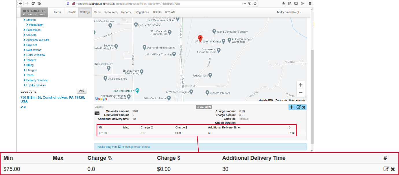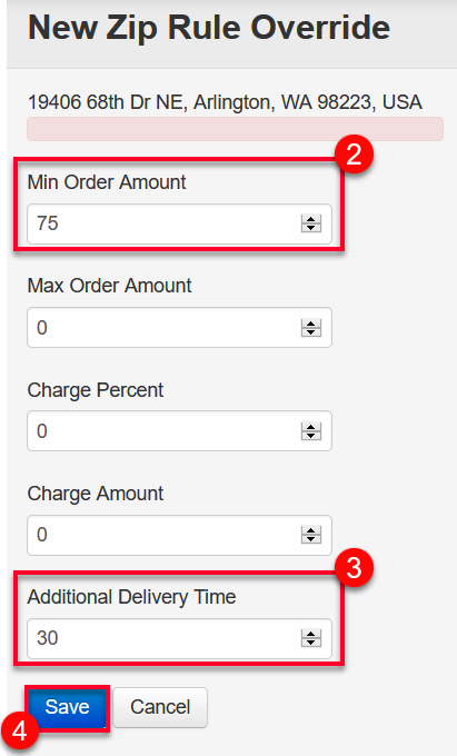 This is how you’re telling the system that you need 30 min for orders upto 75 dollars but for orders to and over 75 dollars, you need an additional 30 min to the 30 min delivery time. See the screenshot below: