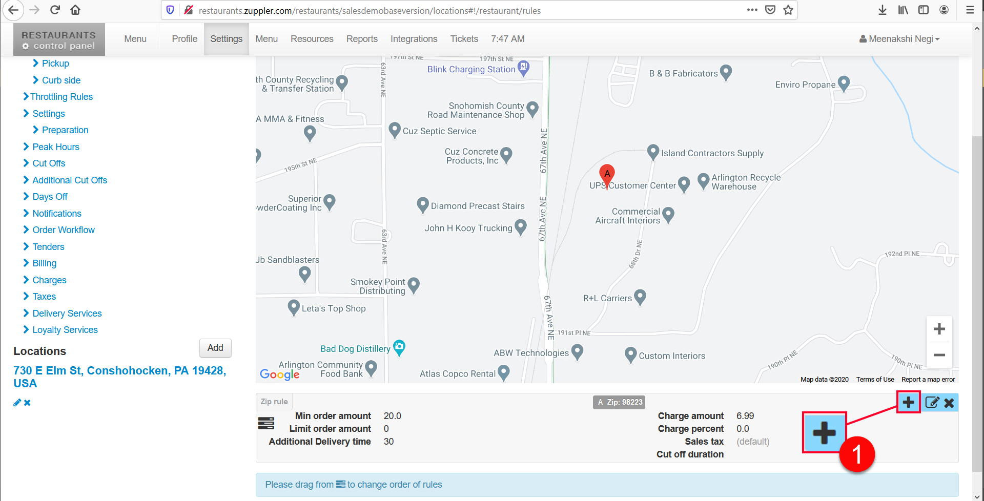 So let’s say, you want to add additional 30 minutes time for the orders equal to or above 75 dollars. So to do this, go the delivery rule, then press add + icon.